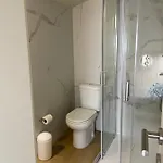 El Vila Do Conde - Os Maias Apartamento destaca por ofrecer comodidades como secador de pelo, una secadora y toallas de baño en el baño. También dispone de un inodoro separado de la ducha y una ducha.